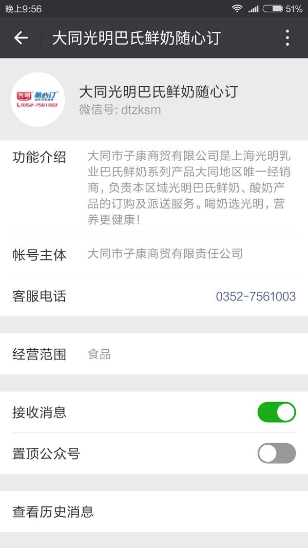 大同光明巴氏鮮奶隨心訂公眾平臺由大同市子康商貿有限公司授權開發,大同市宏微信息技術有限公司提供平臺運營、微網站建設、在線支付等方面的技術支持,大同子康商貿是上海光明乳業巴氏鮮奶系列產品大同地區唯一經銷商,負責本區域光明巴氏鮮奶、酸奶產品的訂購及派送服務。