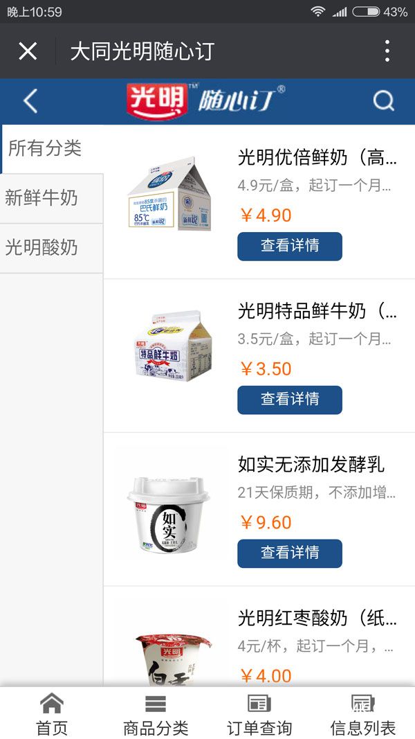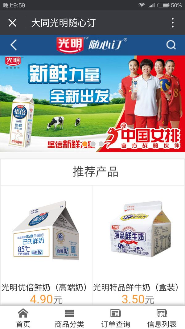 經過緊張的開發和功能調試,近日,大同光明巴氏鮮奶隨心訂公眾平臺正式上線。