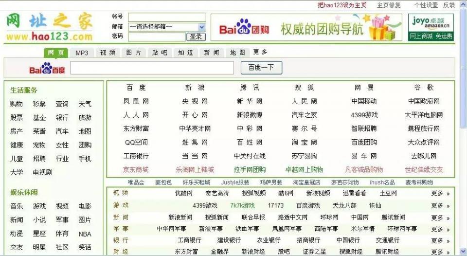 跟它的名字一樣,Hao123頁面非常簡單,只有各類網站的導航列表。