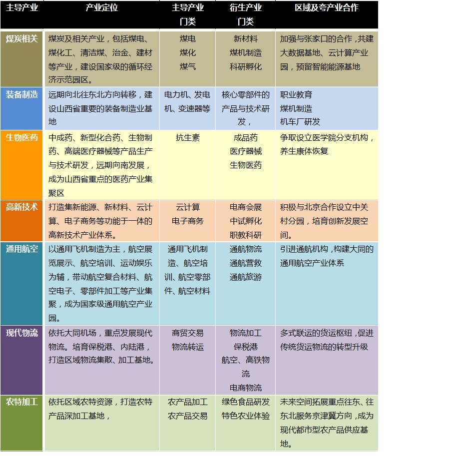 根據本次規劃的產業專題報告的相關分析,結合大同市“十三五”規劃確定了大同市的七大主導產業,包括:
